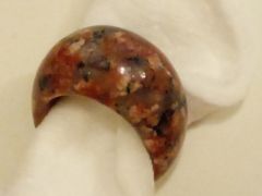 Каменные кольцa. Админ: Стеклокерамика. Такого на рынке сейчас много. Не гранит или агатЗдравствуйте! Из того же магазина, что и сиреневое кольцо из чароита я купила еще одно каменное кольцо. По цвету и пестроте рисунка очень похоже на гранит. Подскажите, пожалуйста, что это за минерал. На фото получился более красноватый и оранжевый цвет, чем в оригинале. В лучах УФ получилась одна малиновая точка, но это отражение УФ фонарика. Заранее благодарна за ответ.