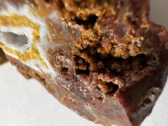 Здравствуйте. На мукаите россыпь мелких прозрачных кристаллов и оранжевых шариков. Подскажите, пожалуйста, это маленькая жеода с кристаллами кварца? И шарики тоже из кварца?