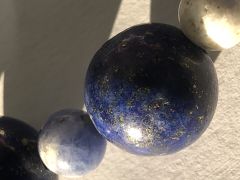 Лазурит ли? Админ: Большие бусины - Афганский лазурит. Месторождение Сар-Ы-СангДобрый вечер! Недавно достала из шкатулки браслет из лазурита, который сделала сама. Бусины покупала лет 10 назад, в Европе (не помню, где именно). Каждая бусина- 10мм. Не могли бы Вы подтвердить или опровергнуть, действительно ли в моем браслете природный лазурит, а не что- то другое? Спасибо огромное!