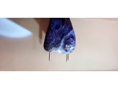 Включение в чароите. Админ: Возможен еще и стисиит с торием ... Нужно проверить флуоресценциюКупила чароит с рук на известной интернет-барахолке, узнала на этом форуме о возможно наличии в нём оранжевых радиоактивных включений, нашла к своём образце нечто, как мне показалось, похожее. Вопрос, ошибаюсь или нет? Старалась снять максимально качественно, учитывая возможности камеры, прошу заранее извинить, если не получилось.