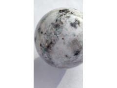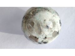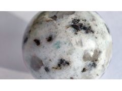 Яшма? Админ: Киви яшма китайское комерческое название горной породы, родственной письменному гранитуЗдравствуйте, уважаемый господин Аметистов. Шар куплен в прошлом году через интернет у российского продавца, как яшма "киви" (торговое название?), диаметр 20 мм. Дневной свет, снято на подоконнике. Это натуральная яшма или нет, можно ли определить происхождение и как она называется? С неизменной благодарностью
