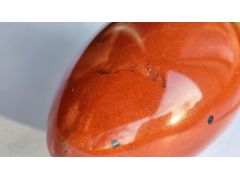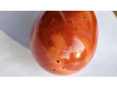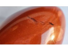 Яшма? Админ: Нет. Похожа на яшму Мукаит, но видны структуры течения вместо структур осаждения.Здравствуйте, уважаемый господин Аметистов. Яйцо куплено в прошлом году через интернет у российского продавца, красная яшма, размер 30×20 мм. Дневной свет, снято на подоконнике. Это натуральная яшма или нет, можно ли определить происхождение? С неизменной благодарностью