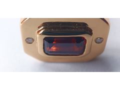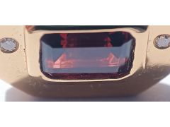 В каждой запонке по одному красно-оранжевому центральному камушку небольшого размера 6х4 мм и по два бесцветных - заявлены как альмандин (0.94 ctw) и бриллианты (0.02 ctw H-I/Si).