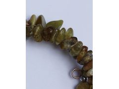 Желто-зеленые звенья под светом лампы фонарика должны менять свой цвет на желтый. Проверьте. Тогда точно гроссуляр из Кении (Национальный парк Tsavo). Но это не цаворит = состав твердого раствора гранатов - другой. =
