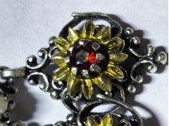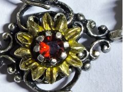 Настоящий гранат? Админ: Чехия, "Богемское" ювелирное стекло.Здравствуйте! Недавно с рук купила серьги, со слов продавца: Германия или Австрия, первая половина 20 века, серебро, позолота, зерновой жемчуг, гранат. Помогите понять, настоящий ли гранат, если да, то действительно ли такой старинный и откуда камень?