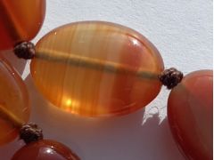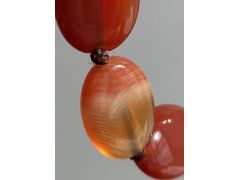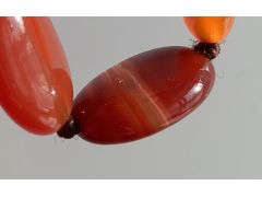 Красный агат? Админ: Природный серый агат, тонированный под карнеол.Здравствуйте. Бусы покупала лет 15 назад на китайском рынке. Бусины очень гладкие, стекло царапают. Вопрос: что это за камень? Сначала думала, что сердолик, но может и хорошая подделка под агат. Подскажите пожалуйста. Заранее спасибо.