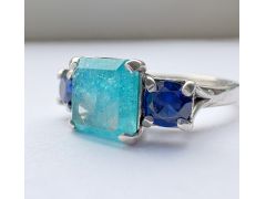 Изумруд ли это? Админ: Более редкий и ценный камень. Изумарин из Замбии или Параиба из МозамбикаСнова на днях приобрела серебряное кольцо у российского продавца, такое же видела на данном форуме, центральную вставку в том случае определили как изумруд, но в моем случае терзают сомнения из-за очень яркого бирюзового цвета. Продавцом вставки обозначены как натуральный уральский изумруд 7х7 мм и синие шпинели. Помогите пожалуйста определить, что же это на самом деле за вставка.