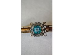 1 - Редкий цвет центрального камня. Это может быть апатит (мягкий камень, должны быть сильные сколы на ребрах), циркон старлет (до революции его получение термической обработкой еще не открыто), турмалин Параиба (открыт только недавно).