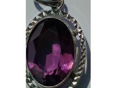 Помогите, пожалуйста, с определением камня. Подвеска куплена с рук. Предположительно первоначально куплена во Франции (со слов продавца). Серебро проверено реактивом. Размер камня 2,0х1,5см. В ультрафиолете камень абсолютно бесцветный.