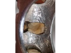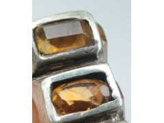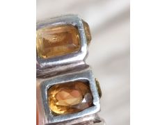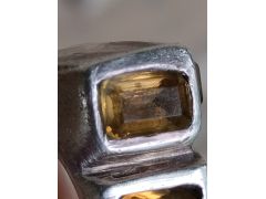 Цитрины? Админ: Да. Получены отжигом аметистовУважаемый Аметистов, Помогите, пожалуйста, определить вставки в серебряном кольце. Кольцо куплено с рук, серебро проверено реактивом. Один камень скорее всего был заменён, т.к. отличается формой (овальный) и цветом (более оранжевый). Как Вы считаете, камни (родные и замененный) могут быть цитрином или это стекло?