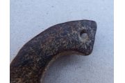 Амулет, нефрит? Админ: Никакого отношения к нефриту и к жадеиту не имеет.Уважаемый господин Аметистов, здравствуйте! Прошу Вас помочь с определением материала подвески, и, если возможно, подскажите - и могла-ли поверхностная коррозия на поверхности возникнуть естественным образом, или имеются признаки искусственного старения? Размеры: длина 6см, ширина 3см. Предмет достался мне как часть коллекции, которую распродавали наследники. В России предмет давно. Больше о нем, к сожалению, ничего выяснить не удалось. Спасибо!