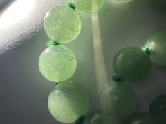 Бусы из нефрита? Админ: Прокрашенный серый китайский кварцит, природный, однакоЗдравствуйте уважаемый господин Аметистов! Продолжаю испытывать свою интуицию покупками на интернет барахолке в Германии и Ваше терпение своими фотографиями. Бусы приобретены в комлекте с другими за не очень большие деньги, в районе 20€. Вроде на свет присутствует и волокнистая структура и точечные включения… Но все равно сомневаюсь что это нефрит.. На более специализированных и более дорогих сайтах в Германии нашла некоторое количество таких же бус с совсем другой ценой, где в описании стоит что это китайский экспорт 60 годов. Что вы скажете по этому поводу? Первое и последнее фото при дневном освещении, остальные на просвет Огромное спасибо за Ваше внимание и что делитесь так щедро своими знаниями!