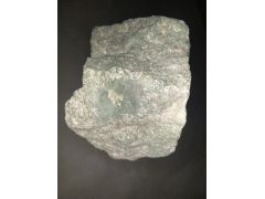 Вам один раз уже ответили ... Достаточно редкий образец составной горной породы. Ранее нам попадались подобные образцы в виде БОЛЬШИХ окатышей из НЕКОТОРЫХ притоков реки Иркут. Зеленый нефрит без черных точек (апокарбонатный = речной) и белые пятна включений карбонатного скарна. На Вашей второй фотографии видно зеленое центральное пятно 100% НЕФРИТА с волокнами актинолита/тремолита в окружении той части горной породы, которая представляет собой смесь нефрита (зеленых волокон ...) с белым карбонатным скарном. Такая смесь вообще говоря называется нефритоидом ("недозревшим") нефритом. Однако, точно процессы вызревания нефрита под действием давления до сих пор изучены недостаточно. В любом случае Ваш камень с течением времени НЕМИНУЕМО превратится в нефрит. Надо только подождать. 100 Миллионов лет ...