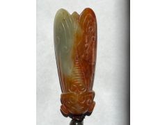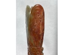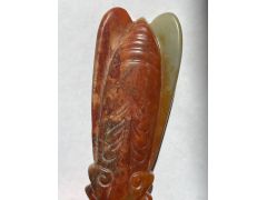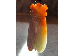 Цикада из нефрита? Админ: Да, из окатыша реки Хойта или Ципа.Доброго дня, уважаемые эксперты! Подскажите, пожалуйста, из чего сделана эта цикада. Была ли она когда-то окатышем? Оранжевое непрозрачное -- это включение другого минерала? Купила в магазине китайского чая. Подумала, что речной бурятский нефрит, но, по информации продавца, это окатыш из реки Хэ Тянь (Китай). Просвечивается только голова и крыло, остальное непрозрачное. Фотографии сделаны на солнце. К сожалению, это предел макросъемки моего телефона. Надеюсь, на них что-то возможно разглядеть.
