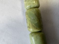 Бовенит мягкий камень, поэтому бусины катаются в цилиндро-катном, а не в шарокатном станке. Иначе выход годных бусин будет нулевой. Бовенит один из немногих РОДНЫХ для Китая материалов. НО. Его пропитывают и тонируют. Но эти бусины не обработаны. Несомненная ... ЭВРИКА!