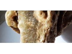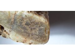 Выглядит как оникс. Для этой осадочной породы крайне характерны мелкие трещинки в объеме, перпендикулярные плоскости осаждения (формирования). Цвет - Камень ШахМассуд (ШакМахсуд) или Арагонит подходит. В бассейне реки Амур мелких проявлений известковых отложений множество. Вдоль реки Уссури должны быть также следы древних вулканов. Вроде есть. Там и происходит образование твердых сильно просвечивающих ониксов.
