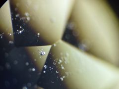 Сапфир из Монтаны или я вляпалась? Админ: Стопроцентная синтетика. Возможно, из Монтаны.Здравствуйте, Я купила через интернет хорошенький камешек, который позиционировался как " сапфир Монтана". Мне, честно говоря, было просто интересно посмотреть и покрутить это чудо и диво . Но всё же интересно - сапфир или " надурили Марыську хитрые ксендзы". Камень довольно большой - 10 mm диаметр, 7mm глубина (?), 6 карат вес. Ещё я сделала фотографии в двух длинах ультрафиолета, это чтоб показать как камень неравномерно окрашен. Ну и микроскоп, конечно.
