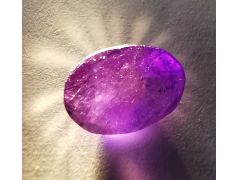 Трещиноватый сапфир с диффузионной обработкой? Админ: Нет. Сапфир, отожженный под слоем флюса ...Добрый день, расскажите пожалуйста какие методы облагораживания проводились над моим камнем. Сапфир, 1,5ct, 7,6х5,7х3,5 мм. Приобретён во Вьетнаме в магазине. При дневном освещении (не на солнце) фиолетового цвета, при освещении жёлтым фонариком приобретает красный цвет.
