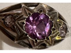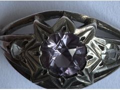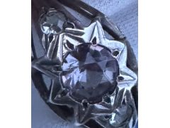 Определить камень. Админ: Выращенный сапфир, легированный ванадием и титаном + искусственный кварцДобрый день, дорогие эксперты. По случаю купила кольцо с интересным камнем, который меняет цвет. Проба советского серебра 875 пробы со звездой, год определить не могу , потому что вместо изменника буквы ЗБ. Цвет центрального камня меняется от голубого в сумерках до розового на солнце. При холодном искусственном - фиолетовый. Может сможете что-то сказать про бесцветные , прозрачные маленькие камни по бокам кольца.